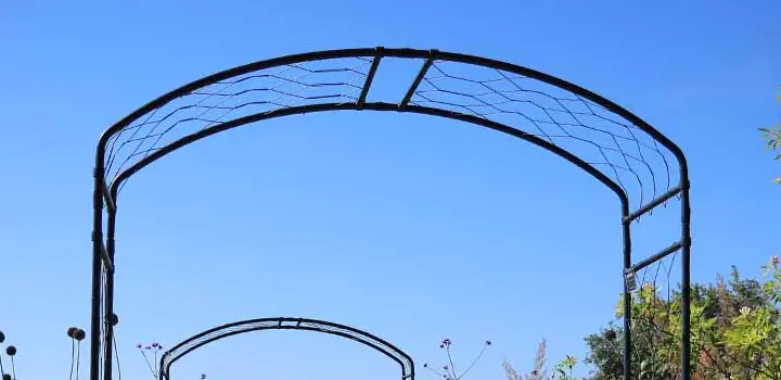 A classic round arch made from solid steel and includes integrated lattice side panels
