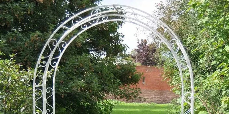 A hard-to-find white/cream coloured metal arch with some really nice scroll detailing