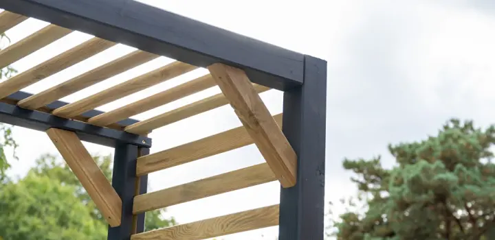 A squared-off arch with slatted side panels in a contemporary design that are great for climbers